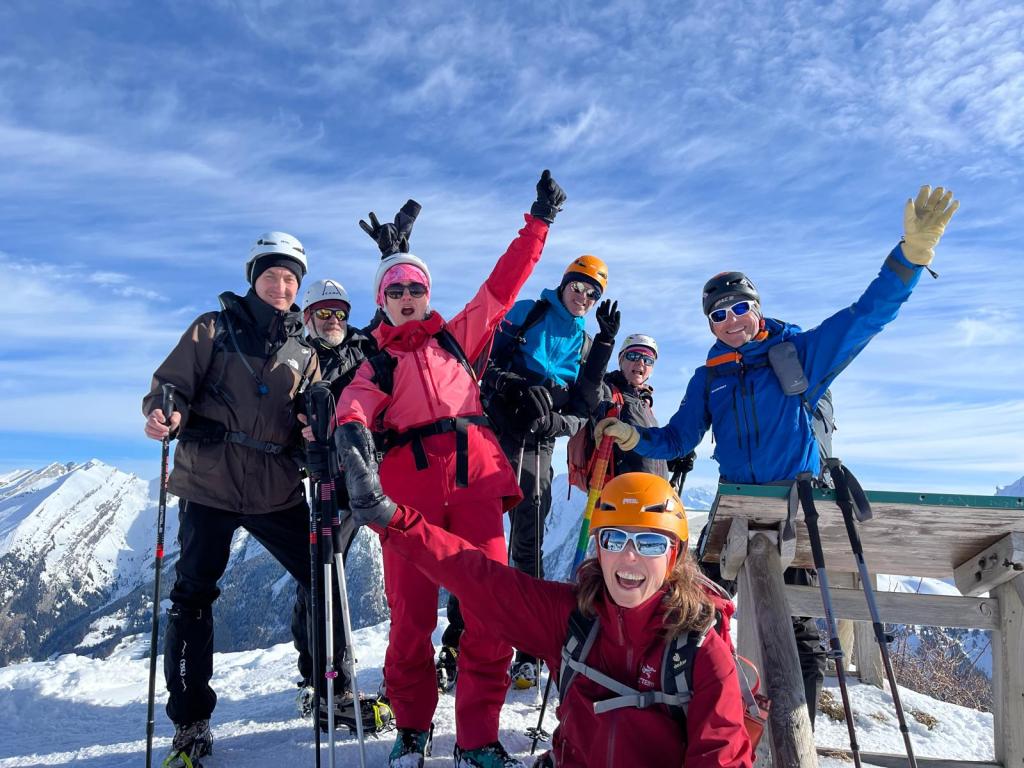 Une sympathique sortie en raquette de 539m de dénivelé. Nous avons chaussé les crampons pour atteindre le sommet.
